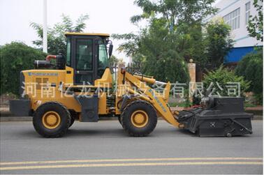 我公司生產(chǎn)的路面環(huán)保無塵清掃機(jī)是結(jié)合國內(nèi)外同類設(shè)備特點開發(fā)的新一代路面環(huán)保無塵清掃機(jī)。在工作過程中沒有灰塵,解決了道路施工中灰塵大,影響交通、環(huán)境污染的問題,響應(yīng)了國家提倡環(huán)保節(jié)能的政策。該設(shè)備在小型裝載機(jī)、滑移裝載機(jī)、叉車等基礎(chǔ)上進(jìn)行改裝,經(jīng)濟(jì)實用。采用專業(yè)、高功效的環(huán)保無塵清掃設(shè)備,替代傳統(tǒng)大量人力低效、不安全、灰塵大的清掃方法,節(jié)省人力成本,具有效率高、效果好、速度快、油耗低等特點。該機(jī)采用封閉灰斗箱,大顆粒通過刷子直接掃入灰斗箱中,配置高效吸塵器,通過風(fēng)機(jī)吸力將微灰塵吸到濾箱體內(nèi),通過濾箱體內(nèi)濾芯的過濾和反吹部件的反吹最后落入灰斗箱中,灰斗箱滿后,可以傾倒至垃圾處理點或直接裝車,清潔而環(huán)保。清掃器與原機(jī)鏟斗可快速更換,還可選配多種機(jī)具,便于實現(xiàn)一機(jī)多用(裝載、無塵清掃、除雪、掃雪、拉毛等),實現(xiàn)多功能。