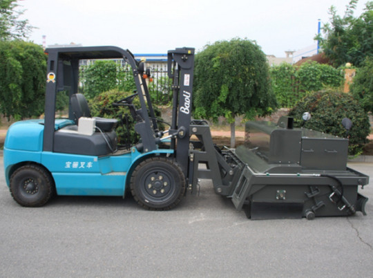 我公司生產(chǎn)的路面環(huán)保無(wú)塵清掃機(jī)是結(jié)合國(guó)內(nèi)外同類(lèi)設(shè)備特點(diǎn)開(kāi)發(fā)的新一代路面環(huán)保無(wú)塵清掃機(jī)。在工作過(guò)程中沒(méi)有灰塵,解決了道路施工中灰塵大,影響交通、環(huán)境污染的問(wèn)題,響應(yīng)了國(guó)家提倡環(huán)保節(jié)能的政策。該設(shè)備在小型裝載機(jī)、滑移裝載機(jī)、叉車(chē)等基礎(chǔ)上進(jìn)行改裝,經(jīng)濟(jì)實(shí)用。采用專(zhuān)業(yè)、高功效的環(huán)保無(wú)塵清掃設(shè)備,替代傳統(tǒng)大量人力低效、不安全、灰塵大的清掃方法,節(jié)省人力成本,具有效率高、效果好、速度快、油耗低等特點(diǎn)。該機(jī)采用封閉灰斗箱,大顆粒通過(guò)刷子直接掃入灰斗箱中,配置高效吸塵器,通過(guò)風(fēng)機(jī)吸力將微灰塵吸到濾箱體內(nèi),通過(guò)濾箱體內(nèi)濾芯的過(guò)濾和反吹部件的反吹最后落入灰斗箱中,灰斗箱滿后,可以傾倒至垃圾處理點(diǎn)或直接裝車(chē),清潔而環(huán)保。清掃器與原機(jī)鏟斗可快速更換,還可選配多種機(jī)具,便于實(shí)現(xiàn)一機(jī)多用(裝載、無(wú)塵清掃、除雪、掃雪、拉毛等),實(shí)現(xiàn)多功能。