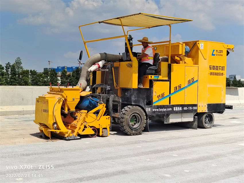 駕駛式路面拋丸機通過機械的方法把丸料(鋼丸或砂粒)以很高的速度和一定的角度拋射到工作表面上,讓丸料沖擊工作表面,以達到被拋射的表面粗化并去除殘留物的效果,與此同時除塵器產(chǎn)生的負壓會將丸料和清理下來的雜質(zhì)粉塵等回收經(jīng)過氣流清洗后,完好的丸料會自動循環(huán)使用,而雜質(zhì)和粉塵也會落入灰斗中。